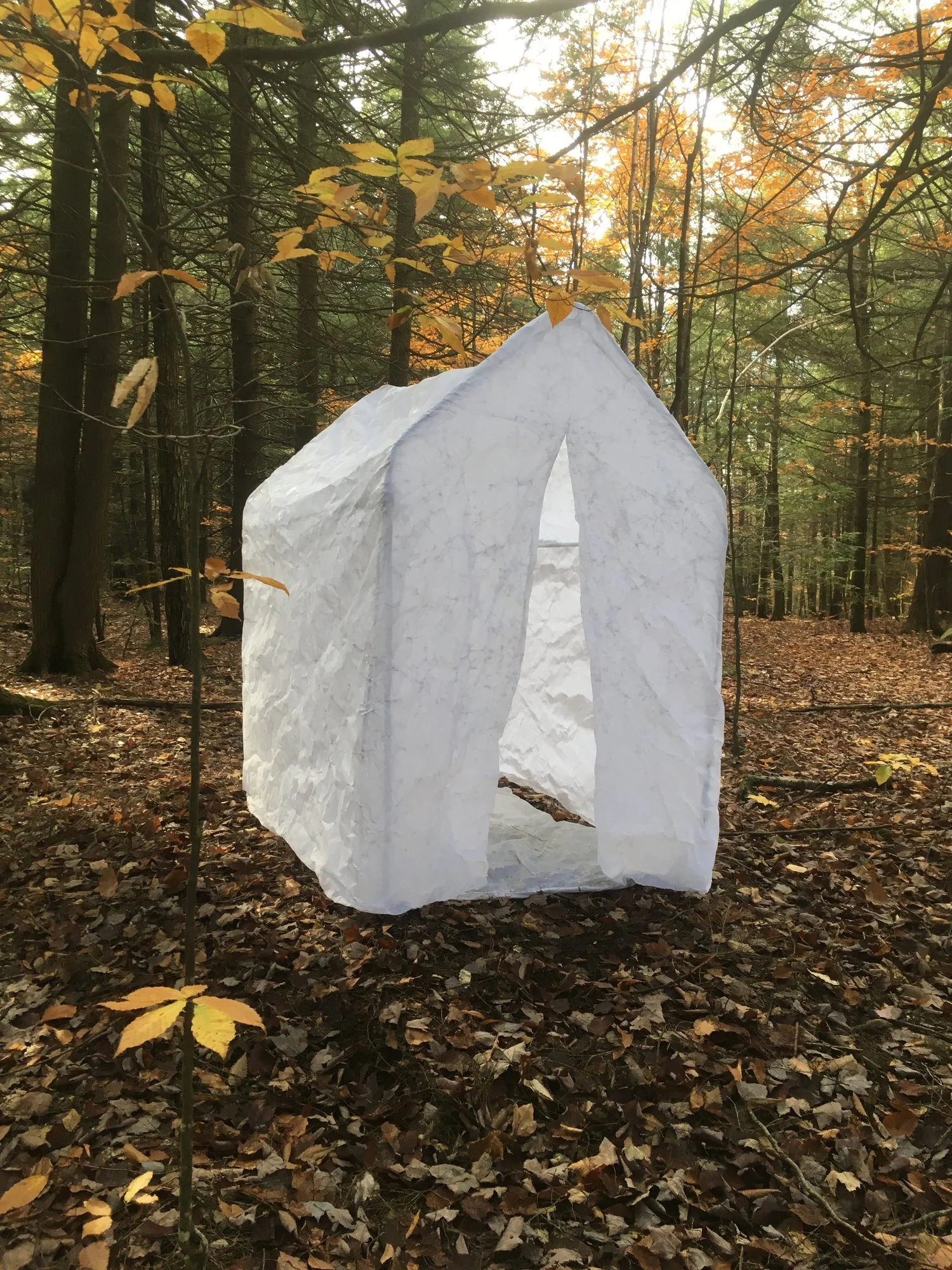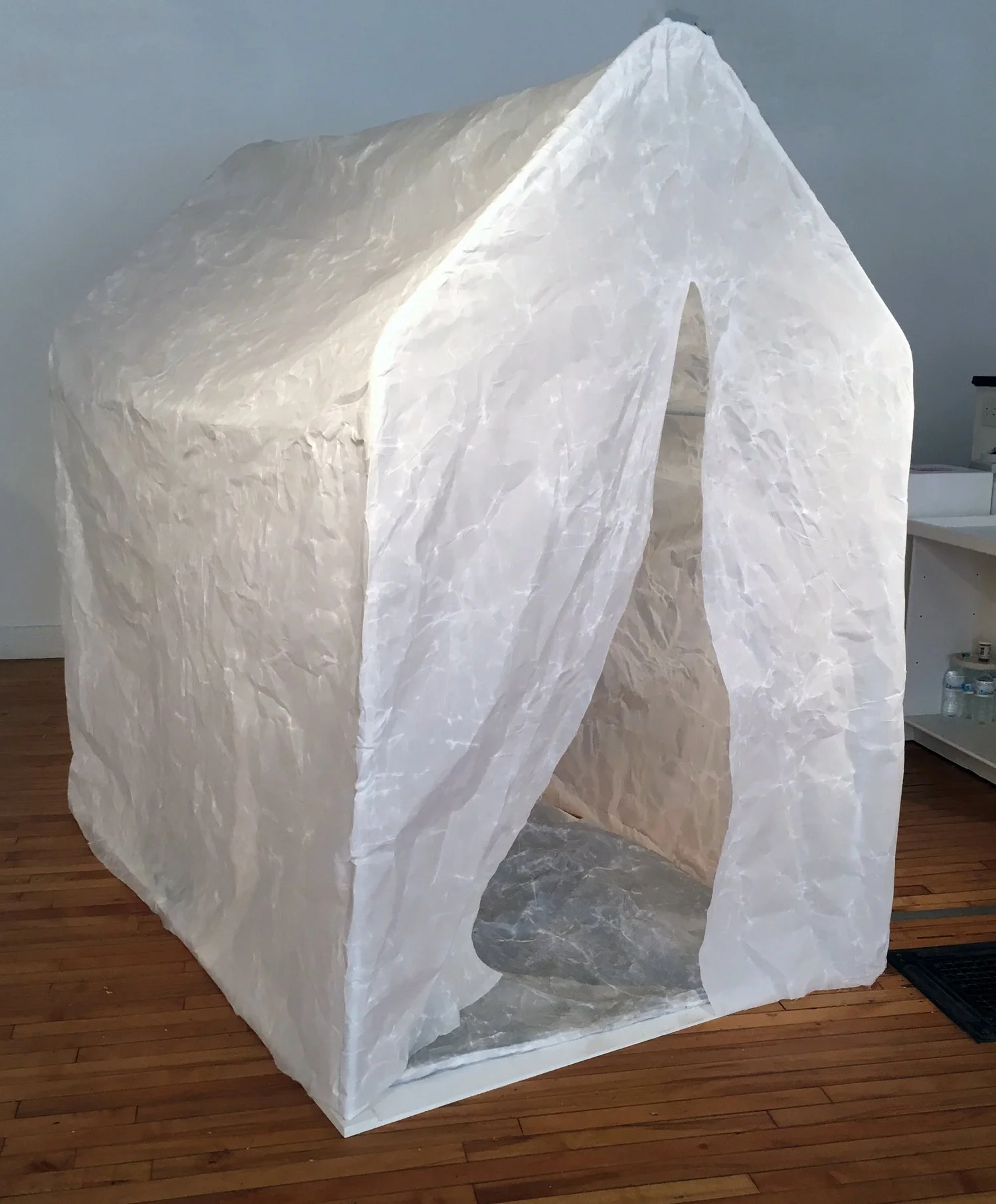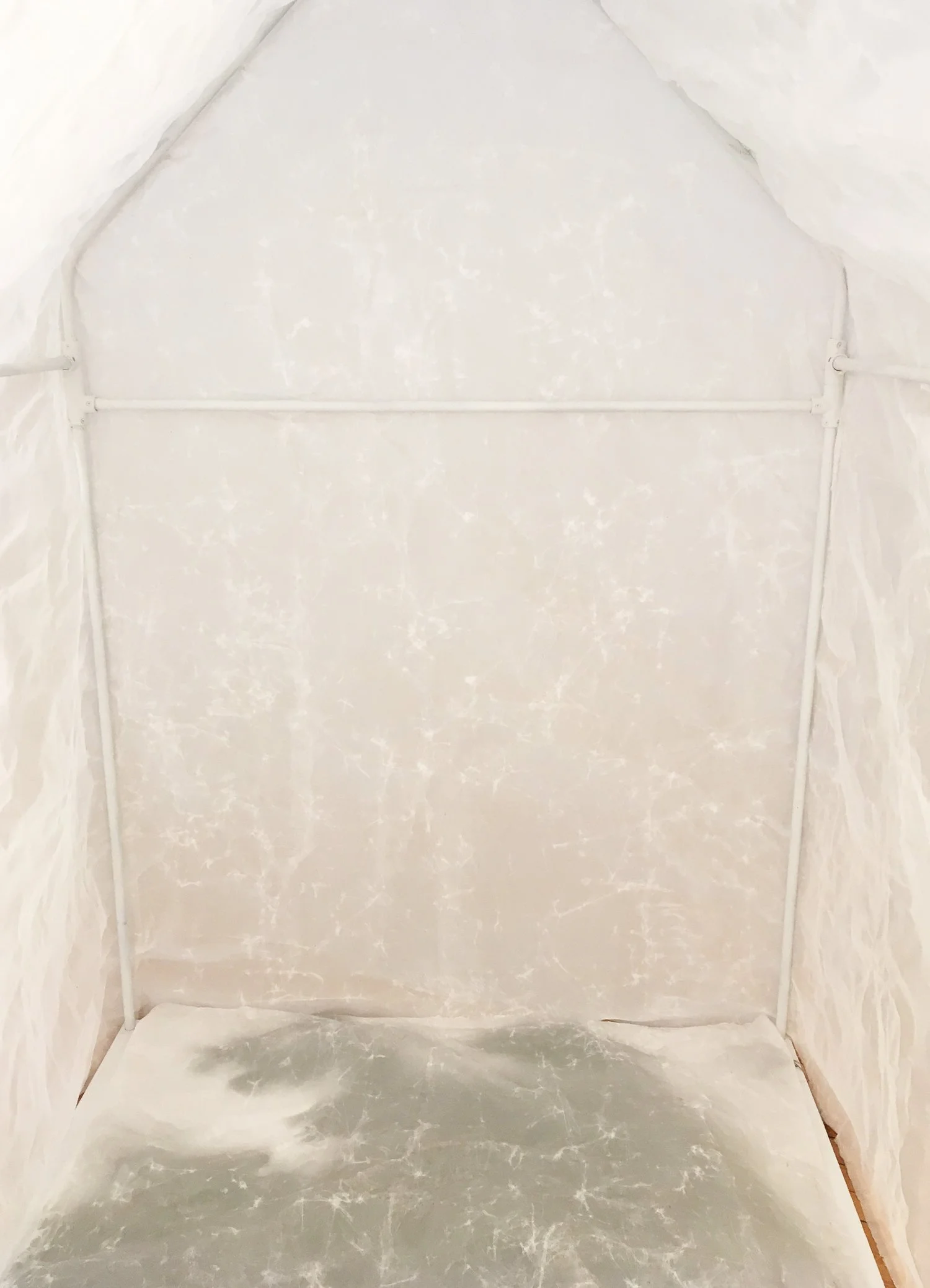 Offering temporary protection from the elements, tents create a duality of the interior and exterior. When in them you are inside yet still outside and never quite at home. They invite the calm of nature and also the anxieties of the unknown outside. By the River is a consideration of this idea and welcomes engagement from both inside and out.
