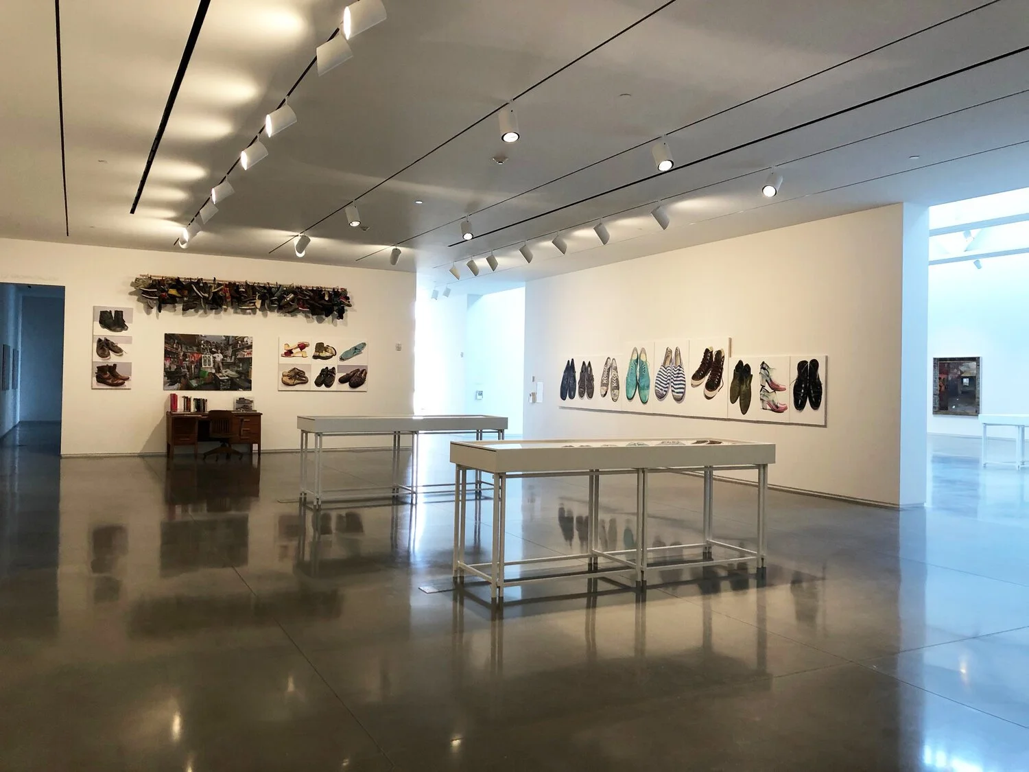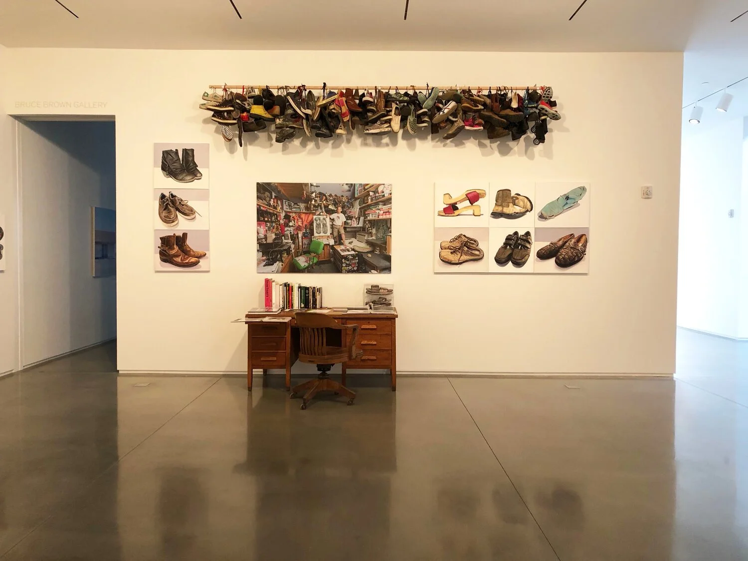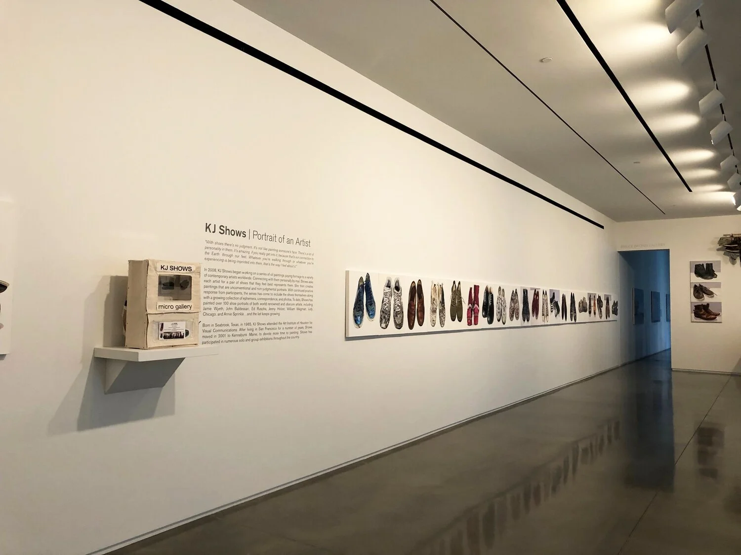 In 2008, KJ Shows began working on a series of oil paintings paying homage to a variety of contemporary artists worldwide. Connecting with them personally by mail, Shows asks each artist for a pair of shoes that they feel best represents them. She then creates paintings that are unconventional and non-judgmental portraits. With continued positive response from participants, the series has come to include the shoes themselves along with a growing collection of ephemera, correspondence, and photos. To date, Shows has painted over 100 shoe portraits of both world renowned and obscure artists, including Jamie Wyeth, John Baldessari, Ed Ruscha, Jenny Holzer, William Wegman, Judy Chicago, and Annie Sprinkle…and the list keeps growing.