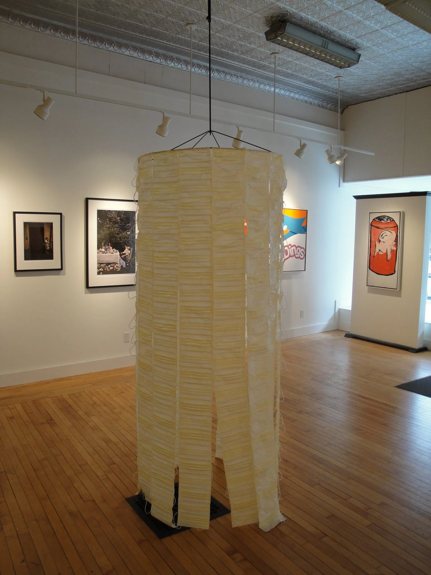 These Requests Are Made to Protect You As Well As Your Family was based on my experiences during a trip to Japan and the exploration of being in a state of fear. I visited Japan during the outbreak of the H1N1 virus. During this time, many precautions were taken when people entered the country including a quarantine for airplanes that involved staying on board until heath officials dressed in medical gowns and white boots went through to check the temperatures of everyone. This work expresses a subtle impression that I was seeking by using surgical masks, similar to those given on the airplane in Japan and were required to wear when we left the plane and went into the airport. They are also commonly used by people in Japan during their everyday routine when they go out into public spaces. By sewing these masks together in a circular form that one enters, I reflected on the idea of what theses masks are used for and the state that a person is in when using these masks in their everyday life.