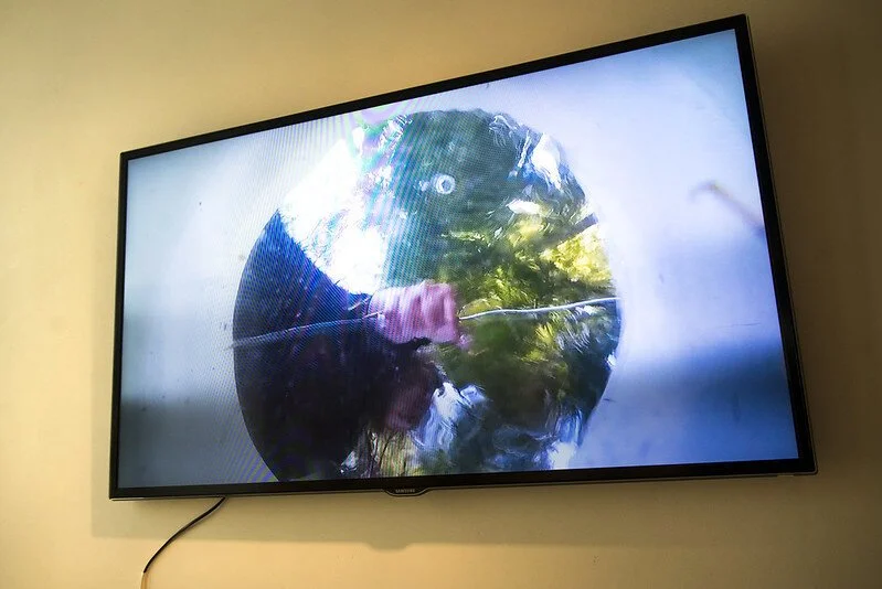 Up the Hill is part of a series of ongoing works made while at residencies, away from my family and home. Waterworks is a consideration of the work involved in motherhood, the work of being an artist, and how to work at both. In this series, I complete different durational tasks with a 5-gallon bucket of water filled with an amount that weighs the same as my young daughter. For Up the Hill, I gathered water from the nearby lake in a bucket found on the grounds and walked the steep incline back to my cabin, pausing when rest was required and moving quickly as I arrived at the top and made my way down the lawn to my destination.