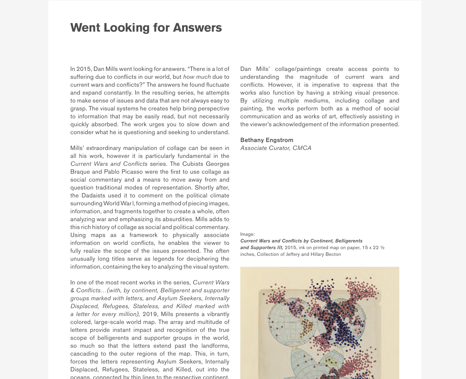 “Dan Mills | Went Looking for Answers,” Dan Mills | Human Topographies exhibition guide, Center for Maine Contemporary Art